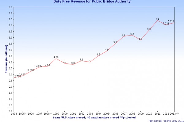 Duty Free stores at the base of the bridge in Buffalo and Fort Erie account for another 22 percent, or $7.2 million projected for this fiscal year.
